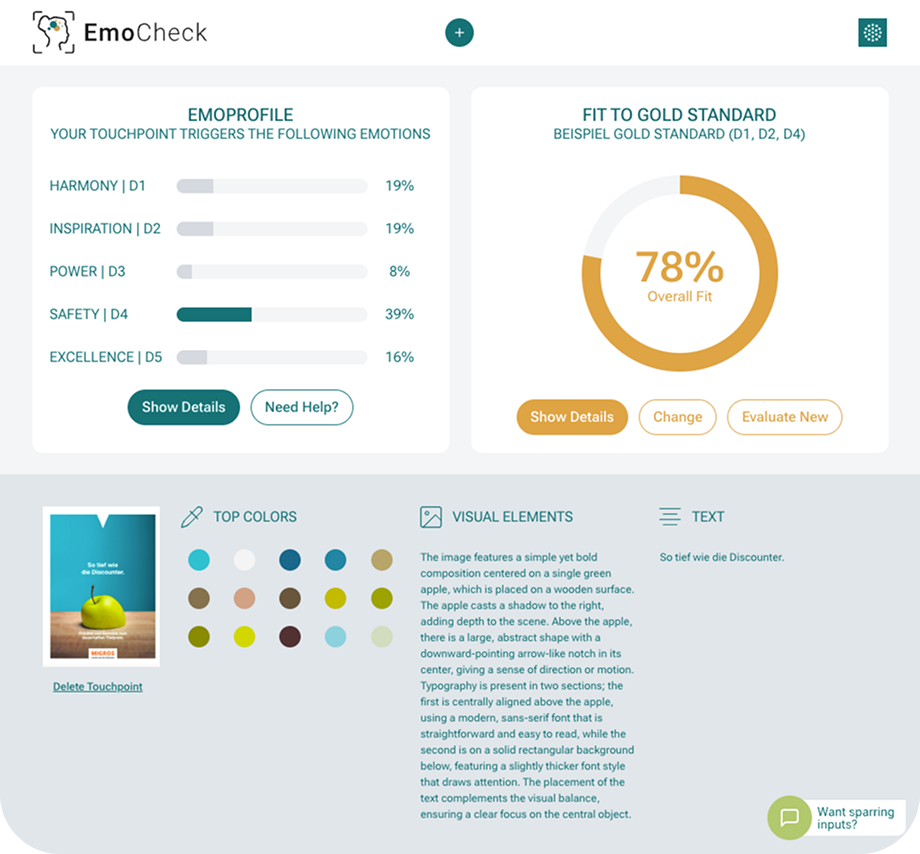 Mit Hilfe des EmoCompass® und EmoCheck setzen Sie genau dort an, wo Entscheidungen getroffen werden: im Unterbewusstsein. In effizienten Studien entschlüsseln Sie nonverbal die Wunschemotionen Ihrer Kund:innen sowie die emotionale Wirkung Ihrer Marke, Ihrer Touchpoints und Ihrer Konkurrenz. Je nach Aufgabenstellung direkt bei Ihrer Zielgruppe oder AI-gestützt.