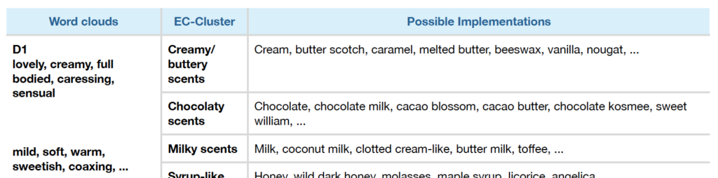 • Excerpt of the detailed briefing on the ingredients, to achieve the desired emotional effect via the different sensory impressions