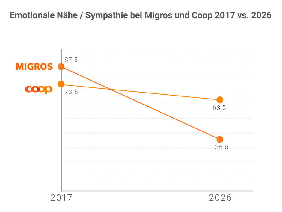 – Die emotionale Rangordnung im Schweizer Detailhandel ist in Bewegung: Migros hat ihren Nähe-Vorsprung an Coop verloren