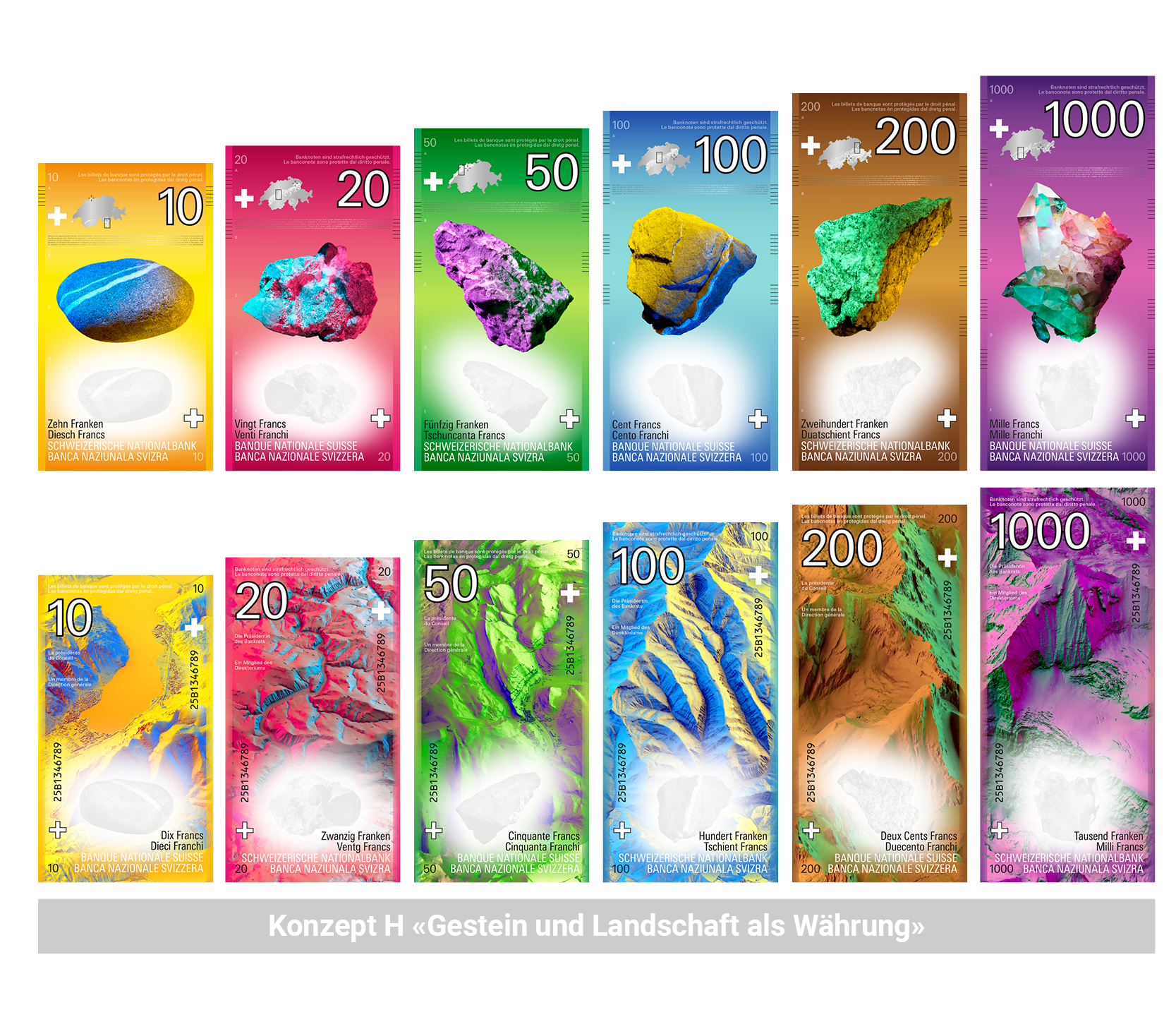 Die eher abstrakt-technischen Designs – etwa G („Innovation und Tradition“), L („Die Schweiz als Ökosystem“) oder H („Gestein und Landschaft als Währung“) – schaffen diese Zugänglichkeit kaum. Hier überlagert die visuelle Komplexität das Gefühl von Nähe.